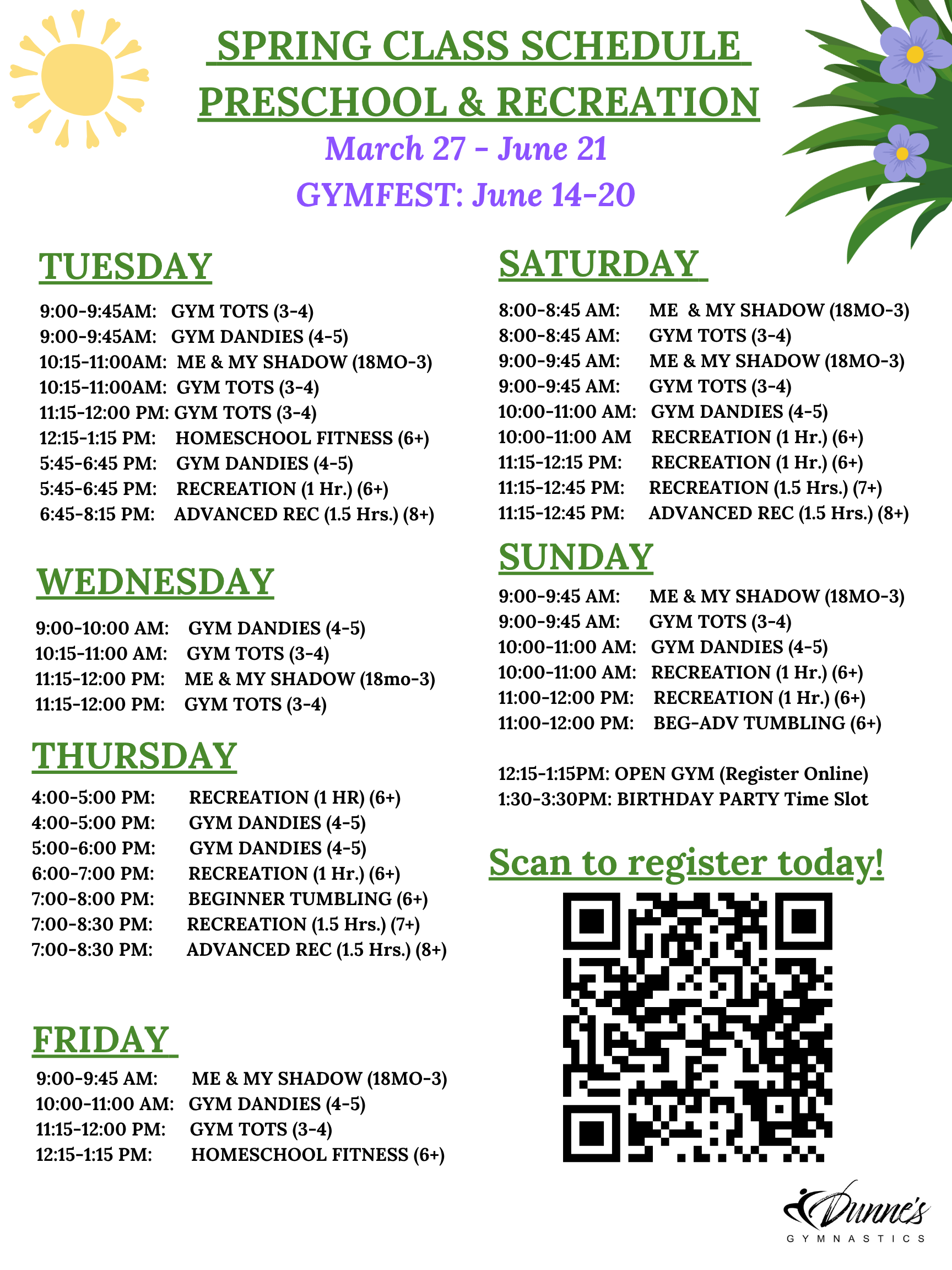 SPRING CLASS SCHEDULE: Dunne's Gymnastics Spring Classes 2026.pdf
